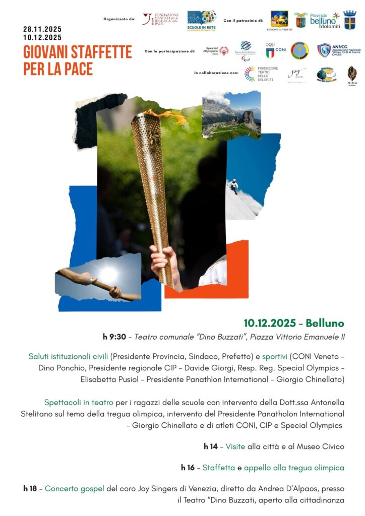 Si avvicina il 10/12 e con questa data anche la tappa conclusiva del progetto Giovani Staffette per la Pace, organizzato dalla Fondazione in collaborazione con l’associazione Scuole in Rete per per un mondo di solidarietà e pace di Belluno.