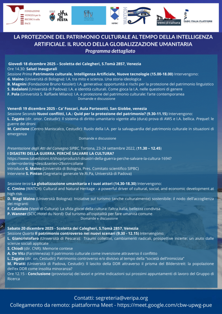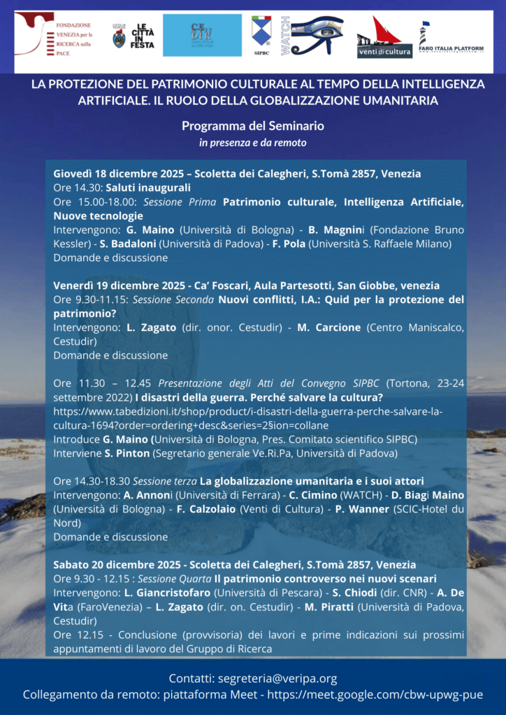 La Fondazione Venezia per la Ricerca sulla Pace invita al seminario di studi dedicato alle nuove sfide tecnologiche e umanitarie nella tutela dei beni culturali.